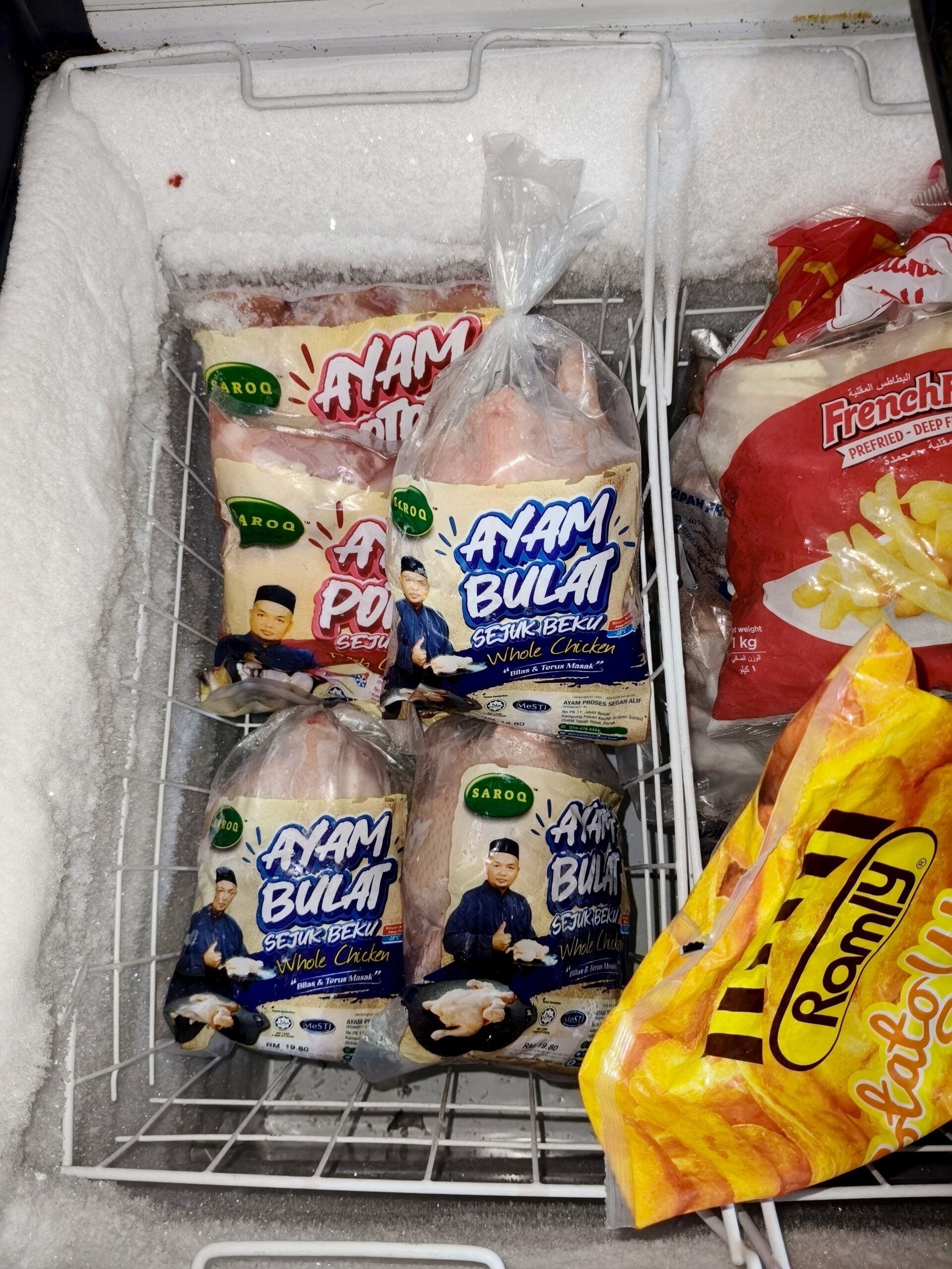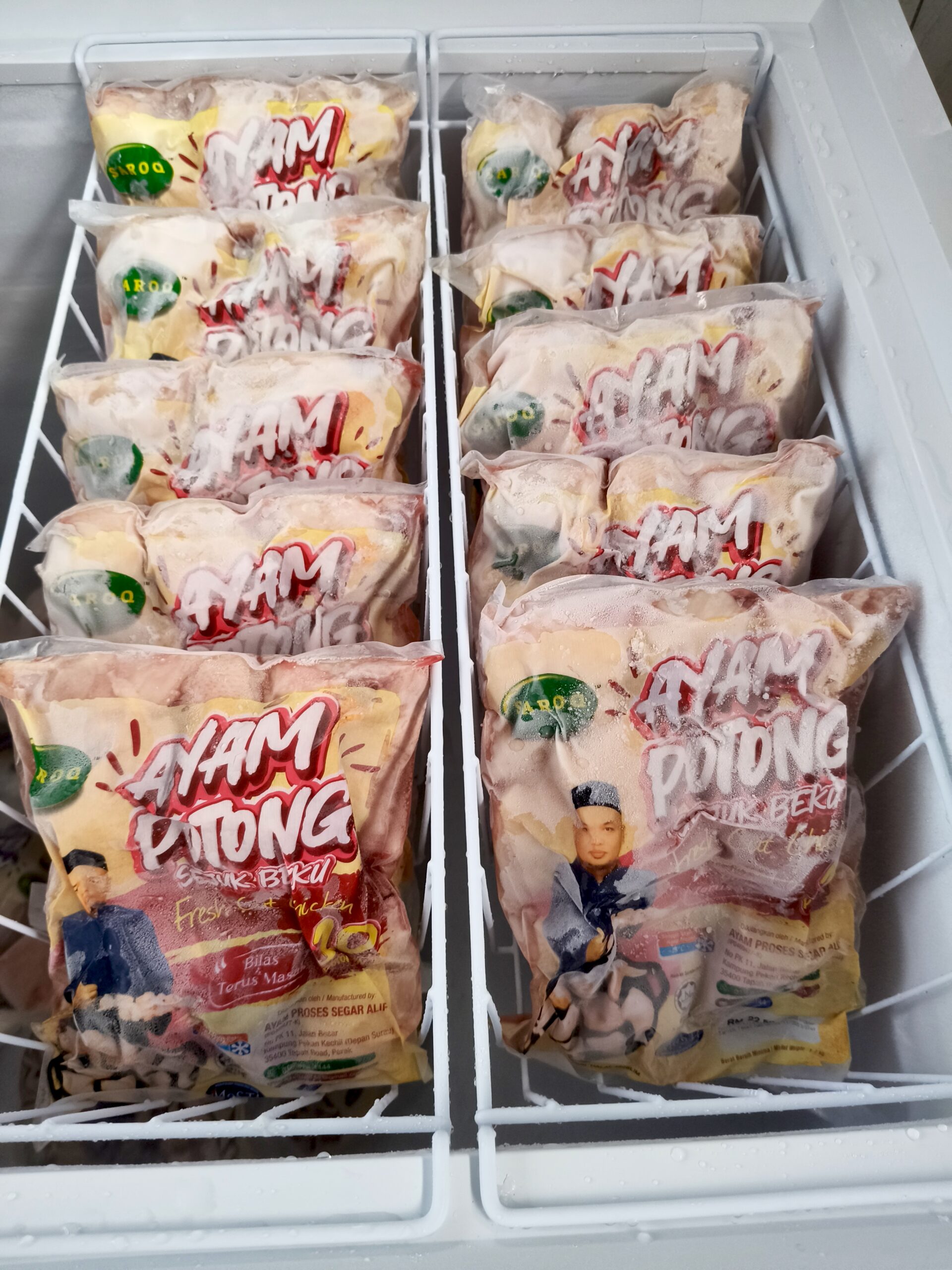 - Ayam Sejuk Beku – Tray wrapped atau vacuum packed untuk ketahanan lebih lama.